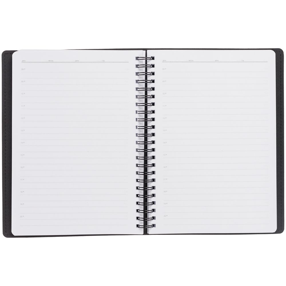 Ежедневник с гибкой обложкой, выполнен из материалов Soft Touch Ultra, голубой JJ и Nice touch, черный АА.