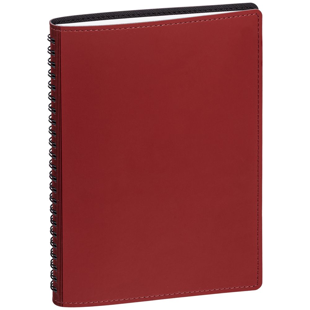 Ежедневник с гибкой обложкой, выполнен из материалов Soft Touch, красный РР и Nice Touch, черный АА.