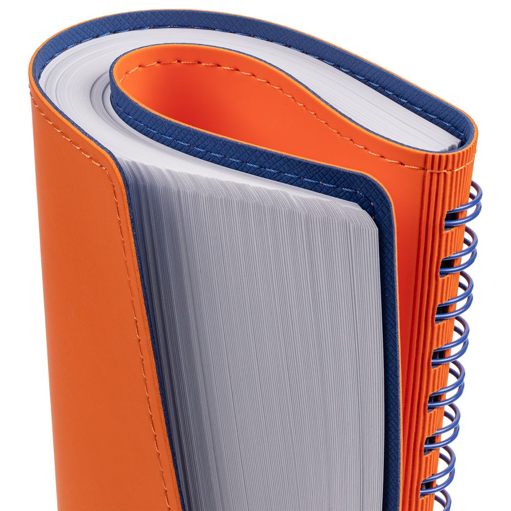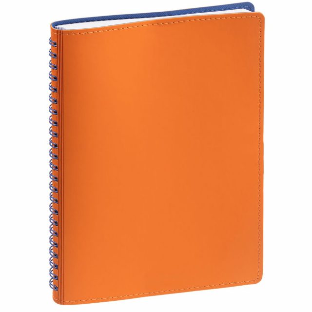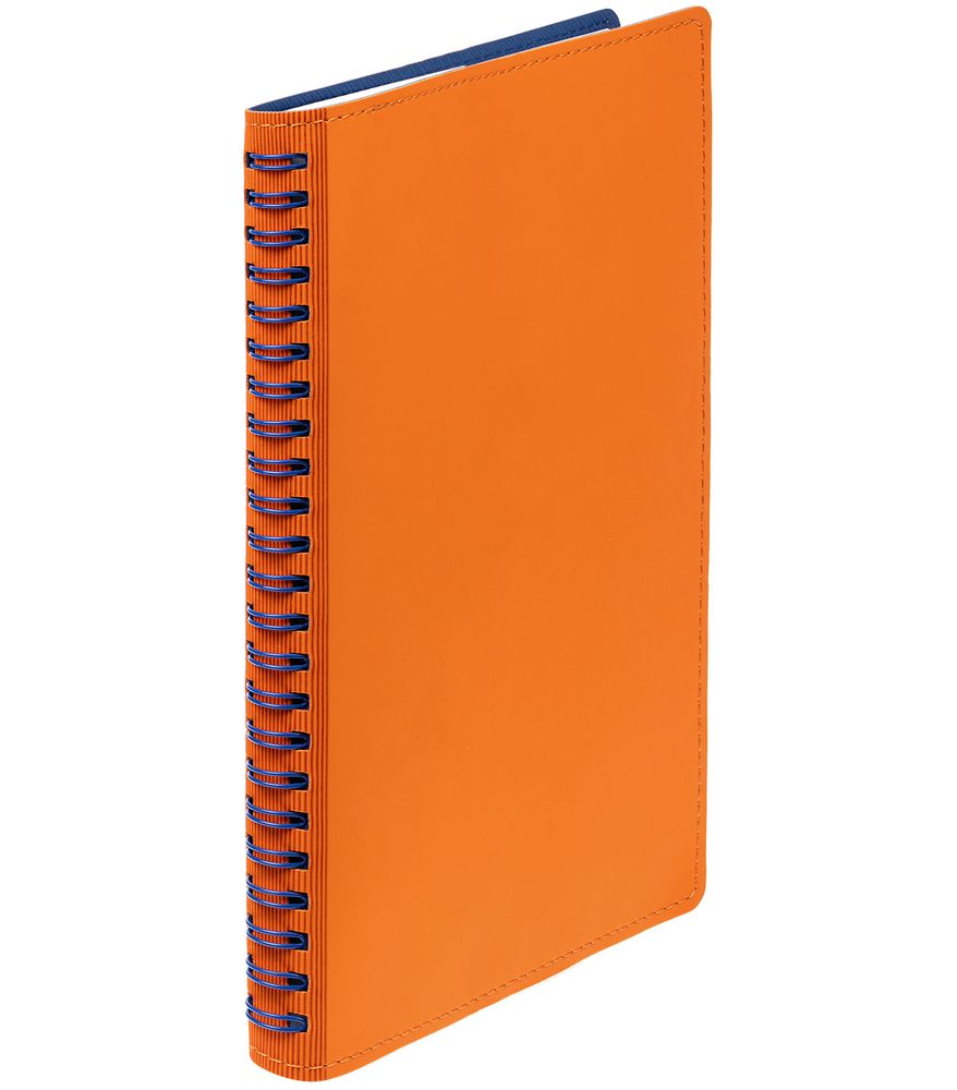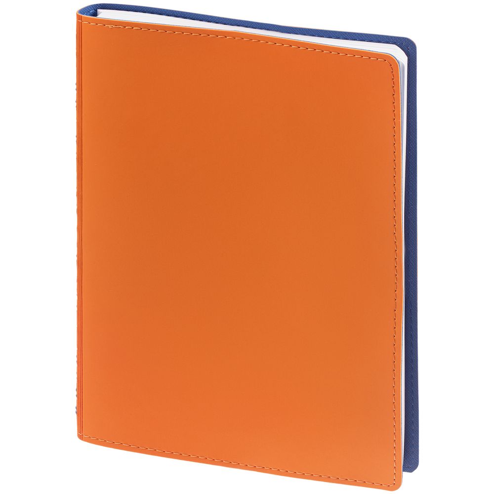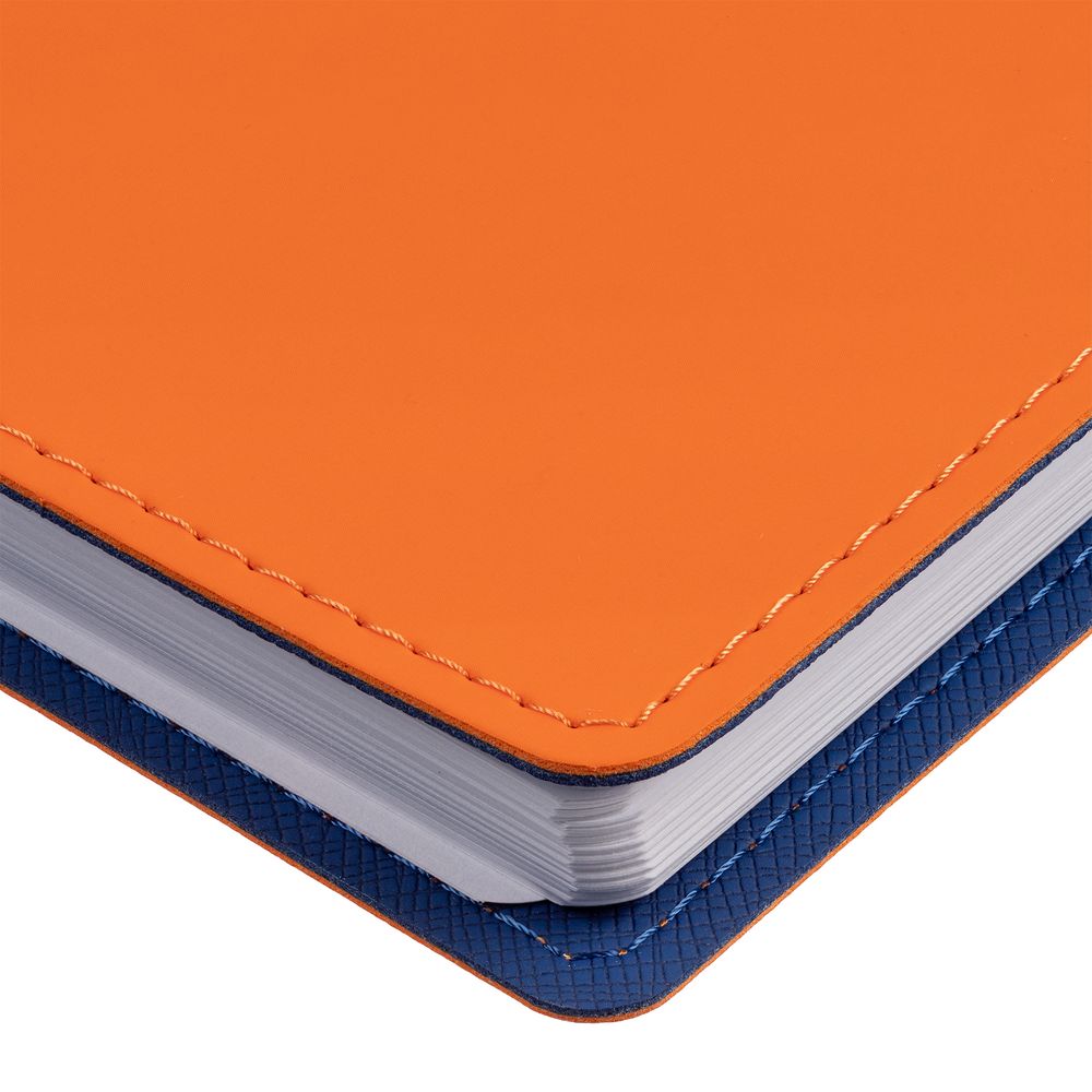 Ежедневник с гибкой обложкой, выполнен из материалов Soft Touch, оранжевый ОО и Nice Touch, синий НН.