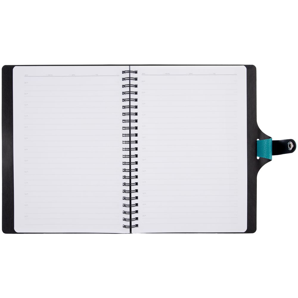Ежедневник с гибкой обложкой, выполнен из материалов La Fite, цвет морской волны II и Waltz черный АА.