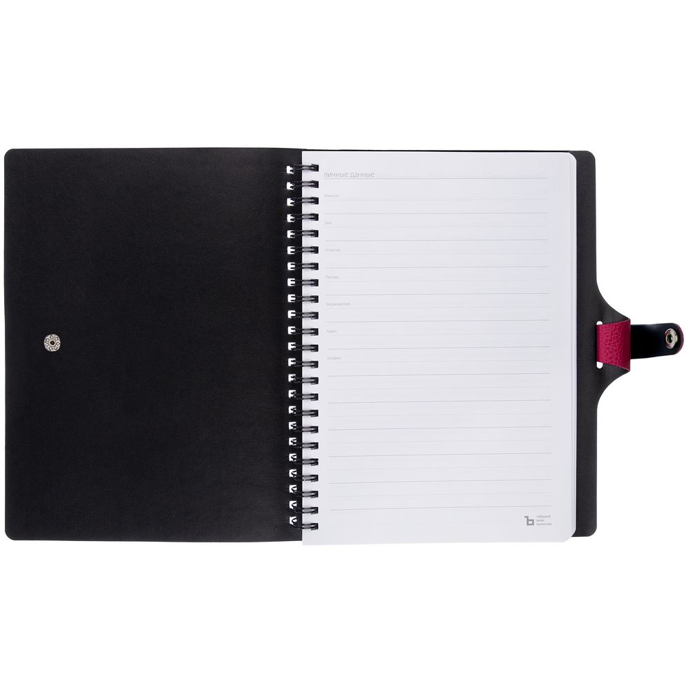 Ежедневник с гибкой обложкой, выполнен из материалов La Fite, малиновый LL и Waltz черный АА.