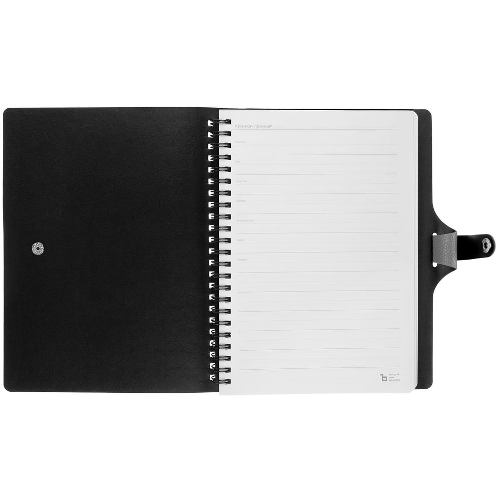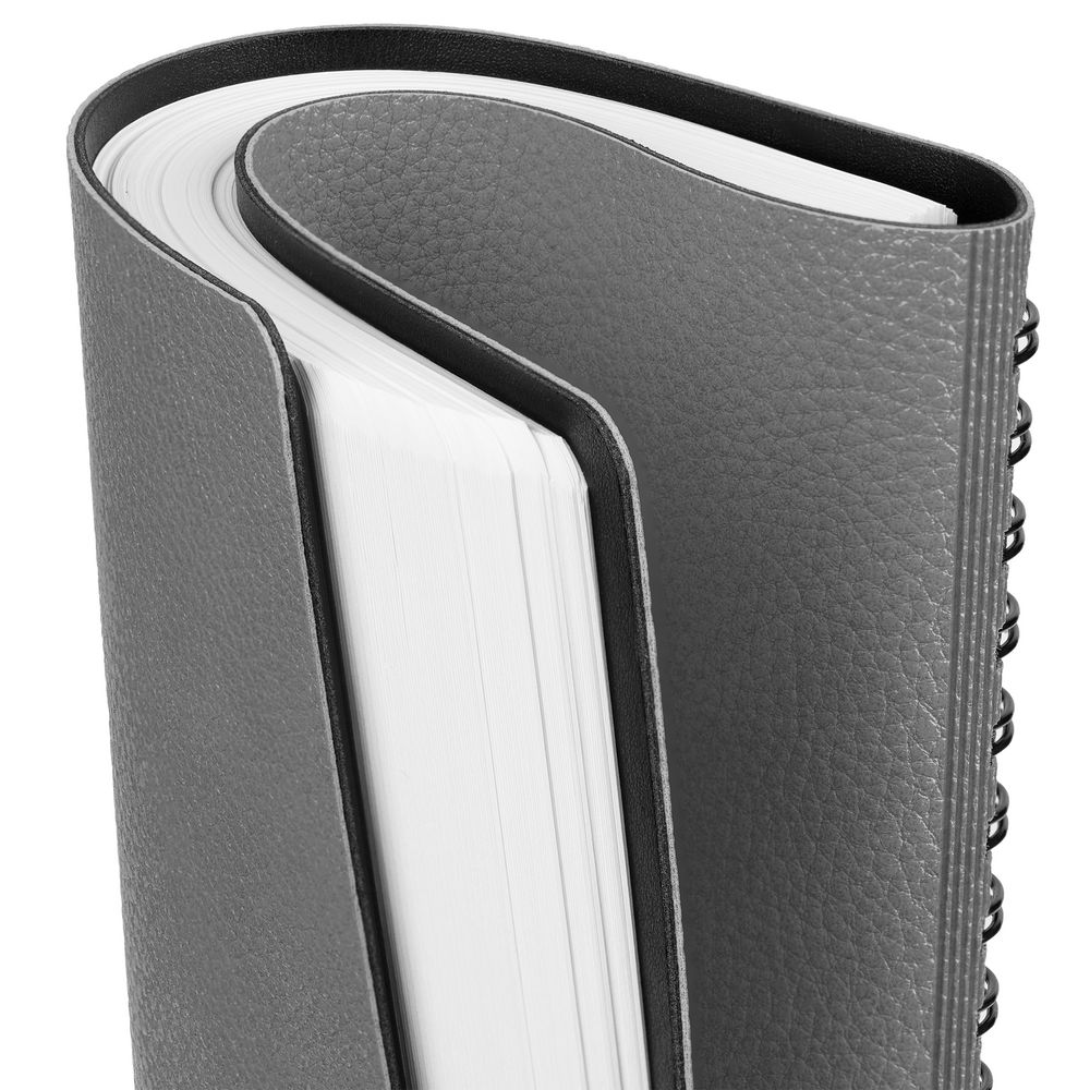 Ежедневник с гибкой обложкой, выполнен из материалов La Fite, серый СС и Waltz черный АА.