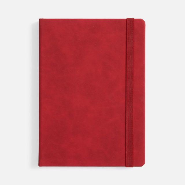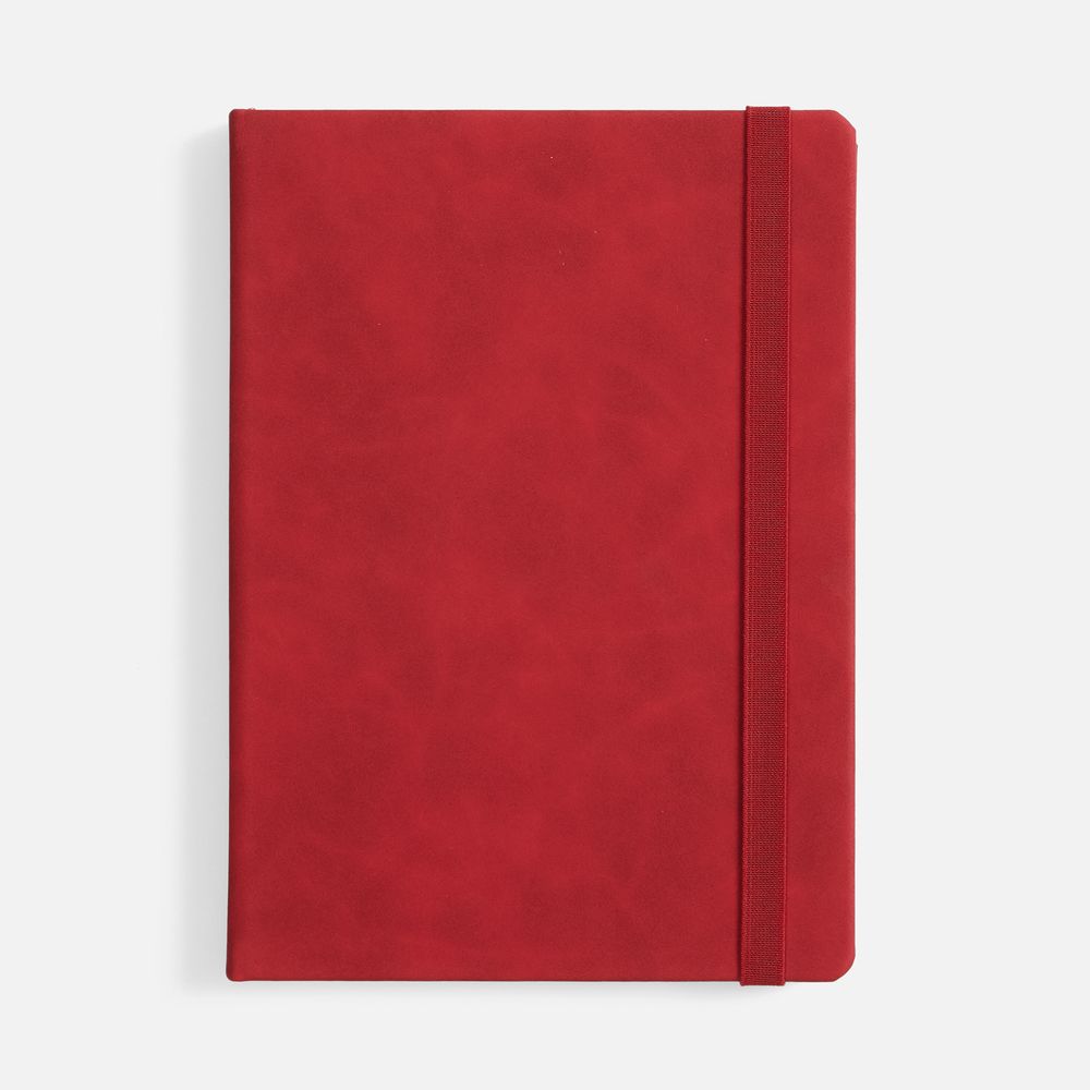 Ежедневник с твердой обложкой, выполнен из материала Nubuck Touch, красный PP, дополнен ляссе в цвет обложки.