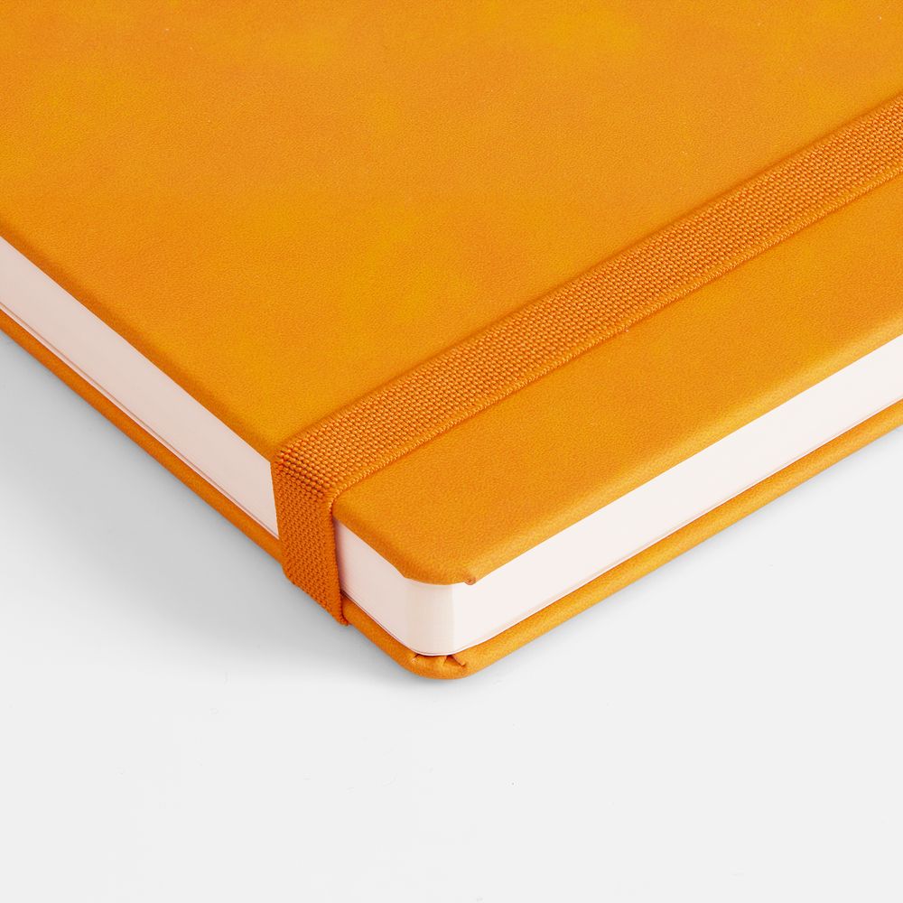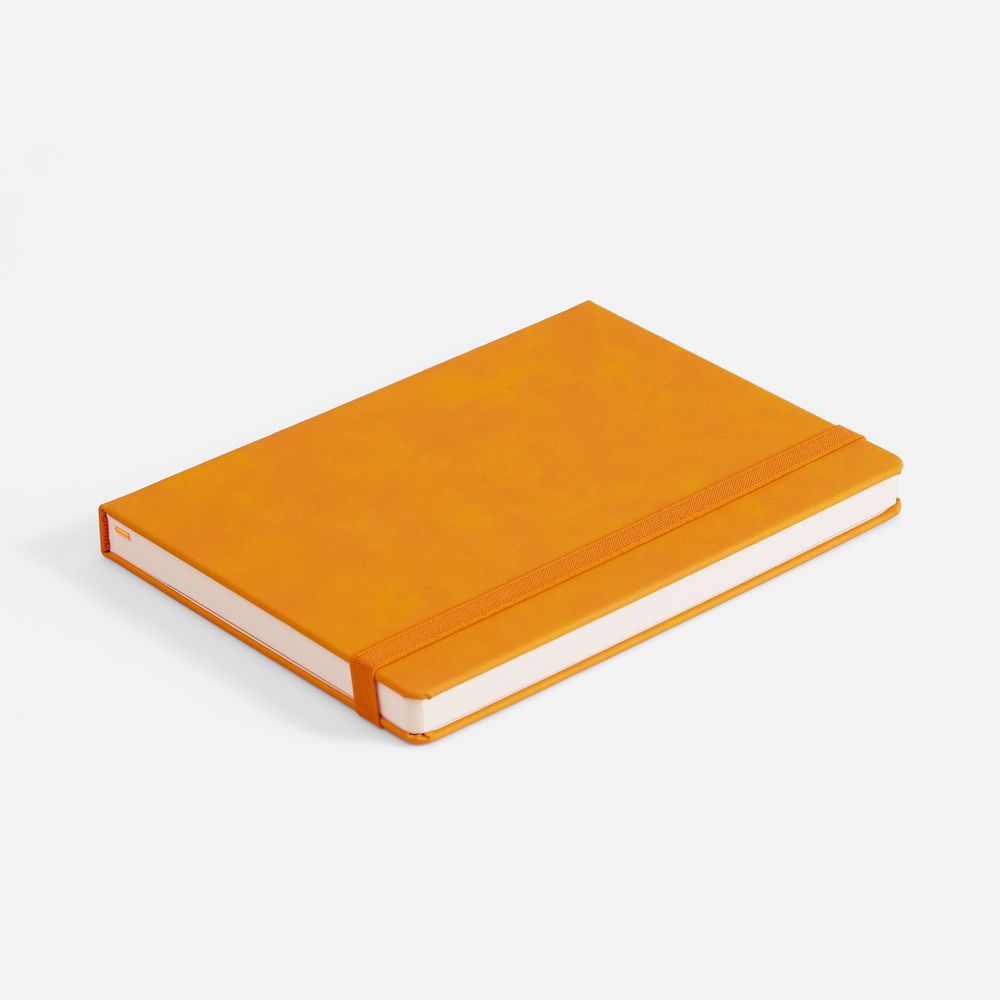 Ежедневник с твердой обложкой, выполнен из материала Nubuck Touch, оранжевый OO, дополнен ляссе в цвет обложки.