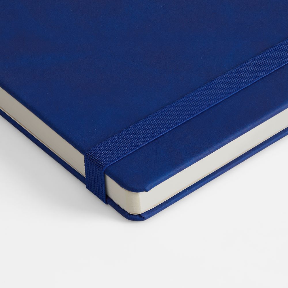 Ежедневник с твердой обложкой, выполнен из материала Nubuck Touch, синий НН, дополнен ляссе темно-синего цвета.