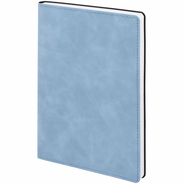 Ежедневник в клетку, с гибкой обложкой, выполнен из материала Nubuck Touch, голубой JJ, дополнен ляссе светло-голубого цвета.