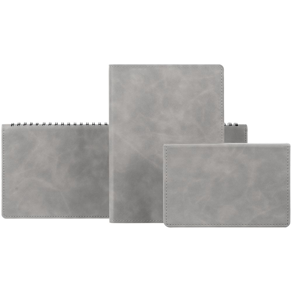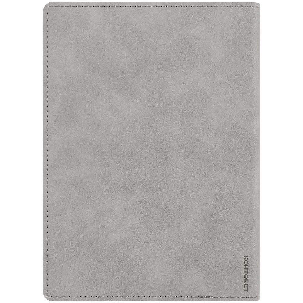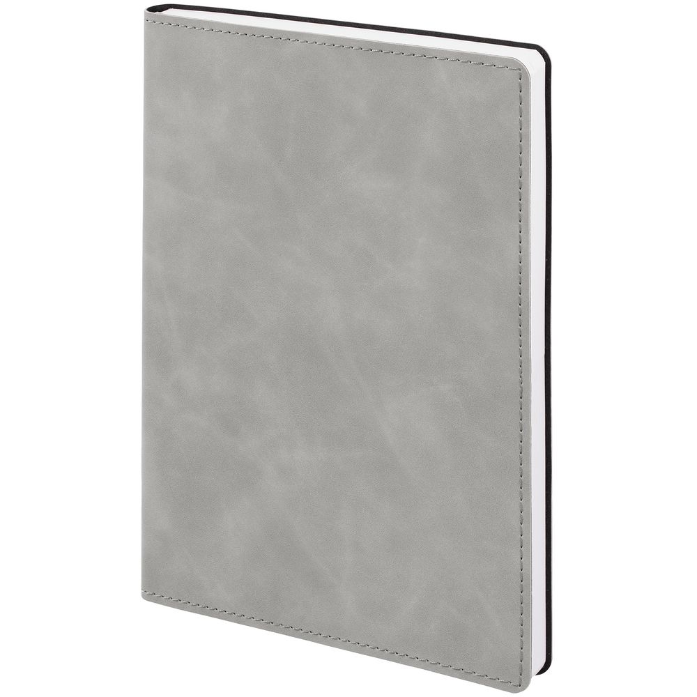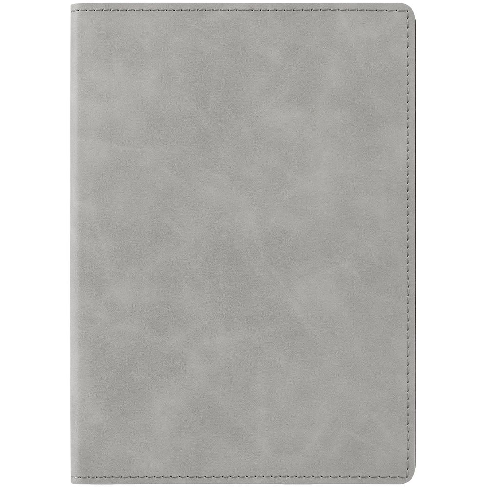 Ежедневник в клетку, с гибкой обложкой, выполнен из материала Nubuck Touch, серый СС, дополнен ляссе темно-серого цвета.