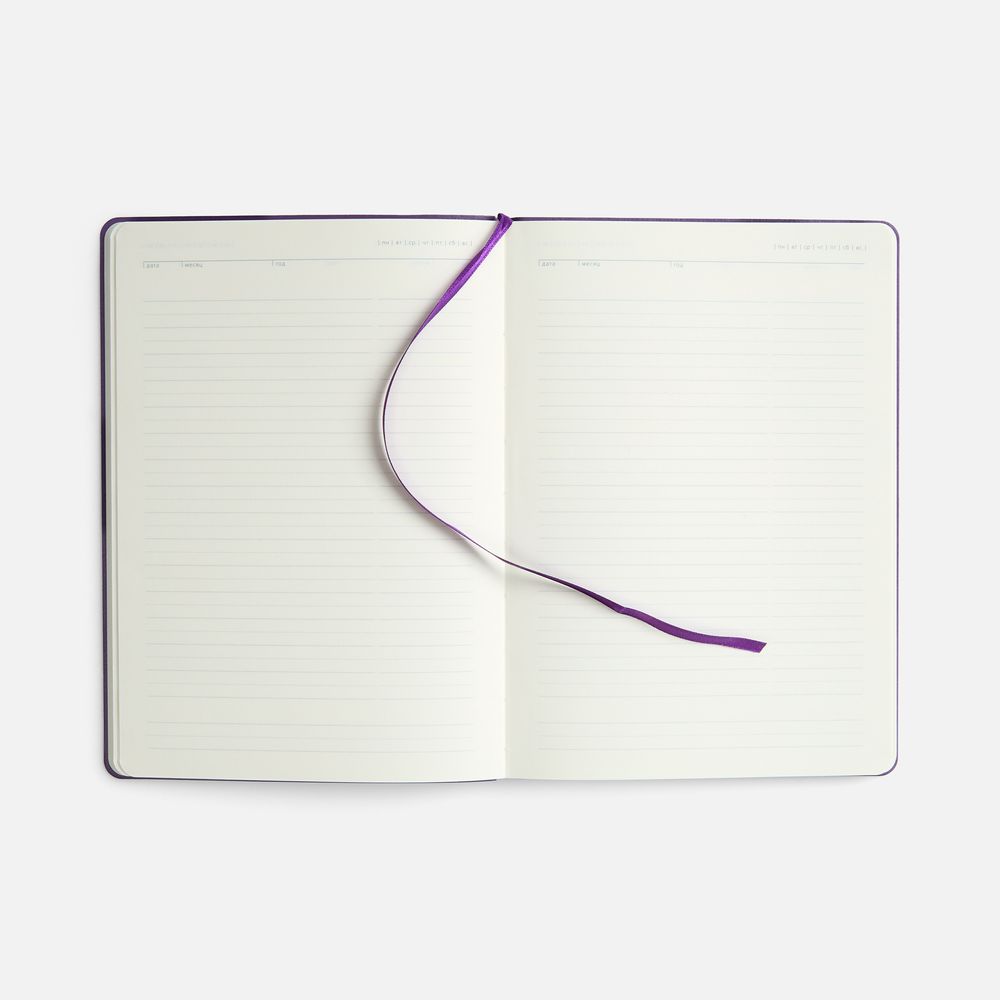 Ежедневник с гибкой обложкой выполнен из материала Vienna, дополнен атласным ляссе и фактурным тиснением обложки.