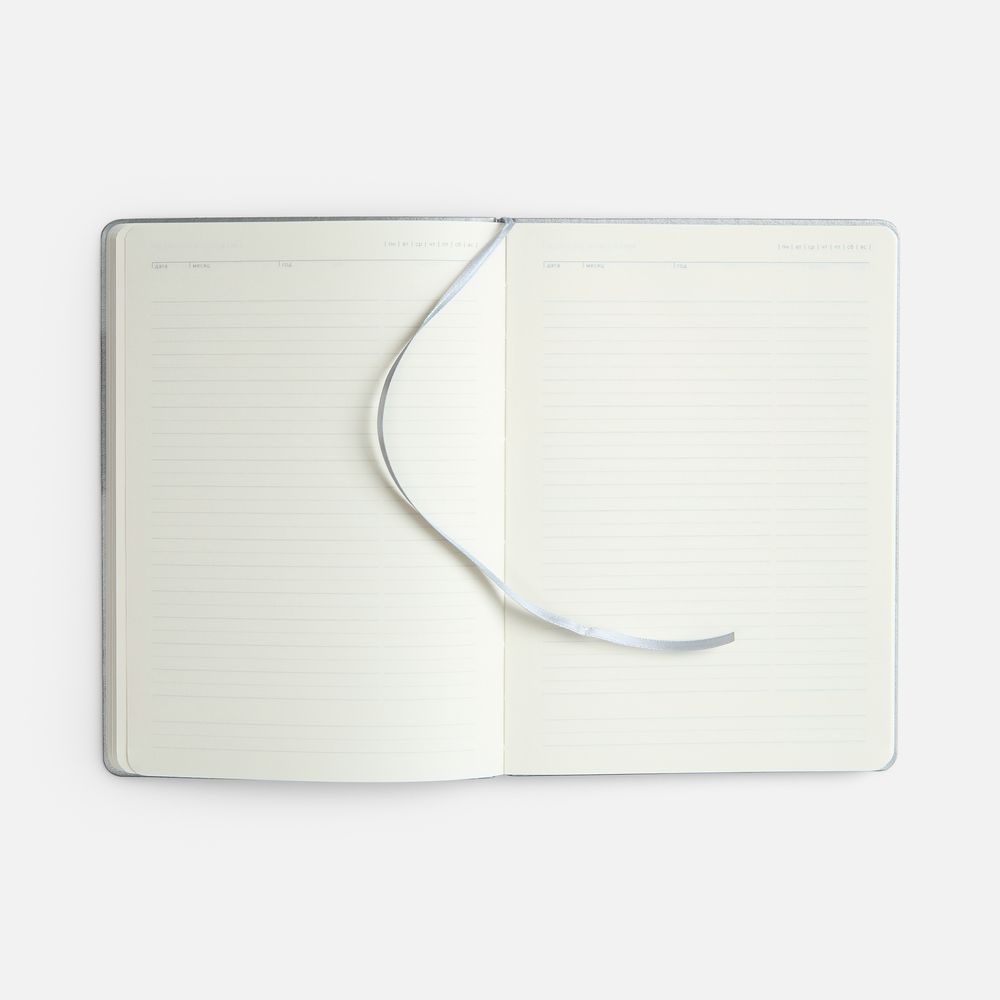 Ежедневник с гибкой обложкой выполнен из материала Vienna, дополнен атласным ляссе и фактурным тиснением обложки.