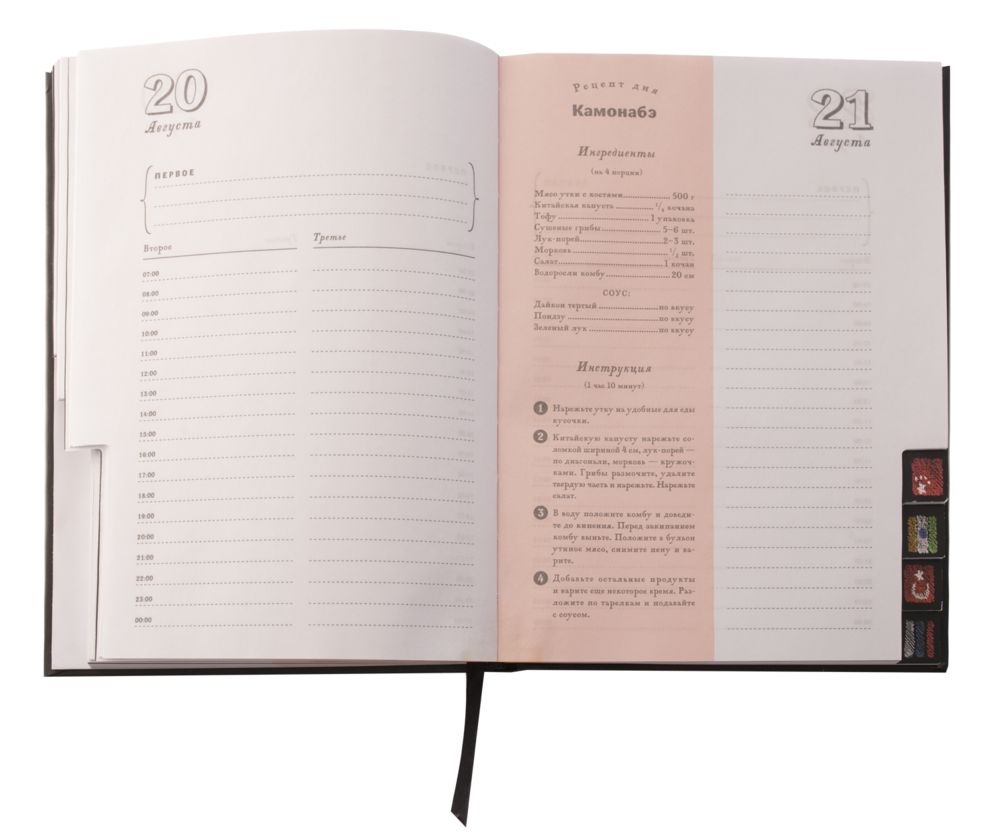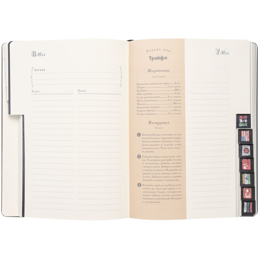В ежедневнике собраны рецепты из разных уголков земного шара — по 4 рецепта из 12 стран мира. Мы изучили кухню каждой страны и предлагаем вам рецепты самых традиционных национальных блюд с указанием географического места их происхождения. Каждый месяц вас ждет знакомство с новой страной, и каждый уикенд — с новым блюдом, которым вы сможете порадовать себя и своих близких.