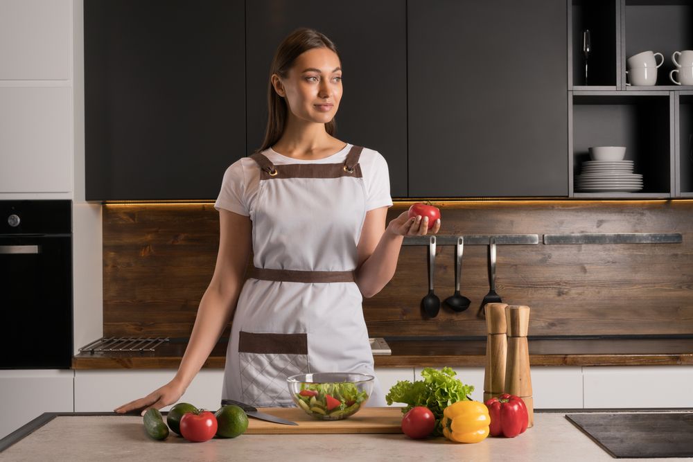 Фартук с регулируемыми лямками отлично сядет на любую фигуру.