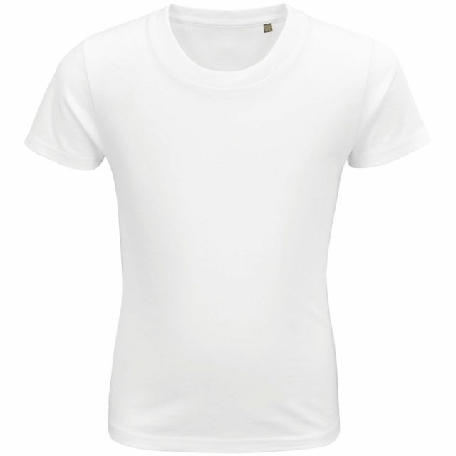 Детская кроеная облегающая футболка из органического хлопка с круглым вырезом.