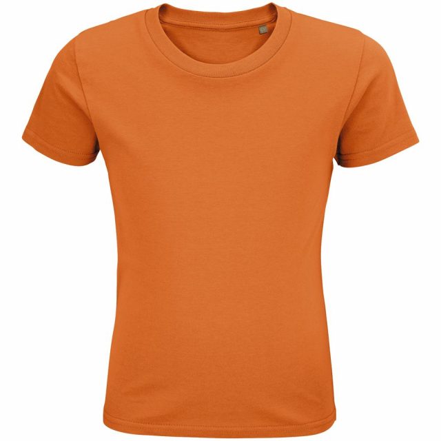 Детская кроеная облегающая футболка из органического хлопка с круглым вырезом.