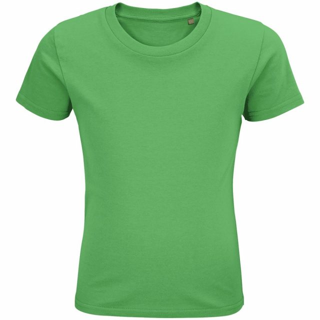 Детская кроеная облегающая футболка из органического хлопка с круглым вырезом.