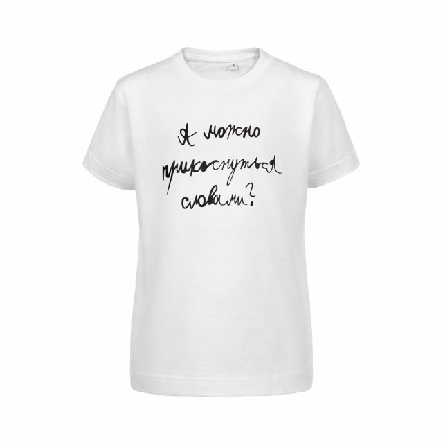 Радостно видеть, как из наброска, меткой фразы, рождаются реальные вещи, как идея обретает форму. Для студентов инклюзивных мастерских «Антон тут рядом» это не только важный творческий опыт, но и возможность заниматься любимым делом и находить друзей — 10% от продажи изделий идет на поддержку работы фонда.Классическая кроеная футболка с боковыми швами и укрепляющей тесьмой по вороту. Край ворота в резинку с эластаном.