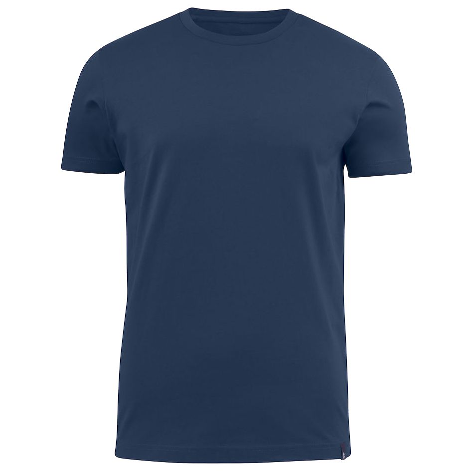 Мужская футболка с круглым вырезом. Двухслойная резинка предохраняет воротник от деформации после стирки.