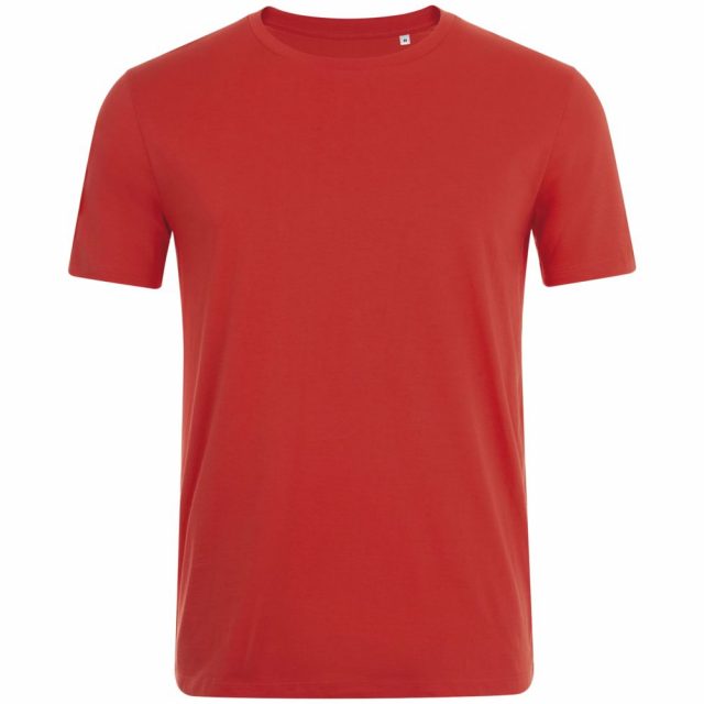 Кроеная мужская футболка с круглой горловиной. Ворот в тонкую резинку с укрепляющей тесьмой. Облегающий силуэт.