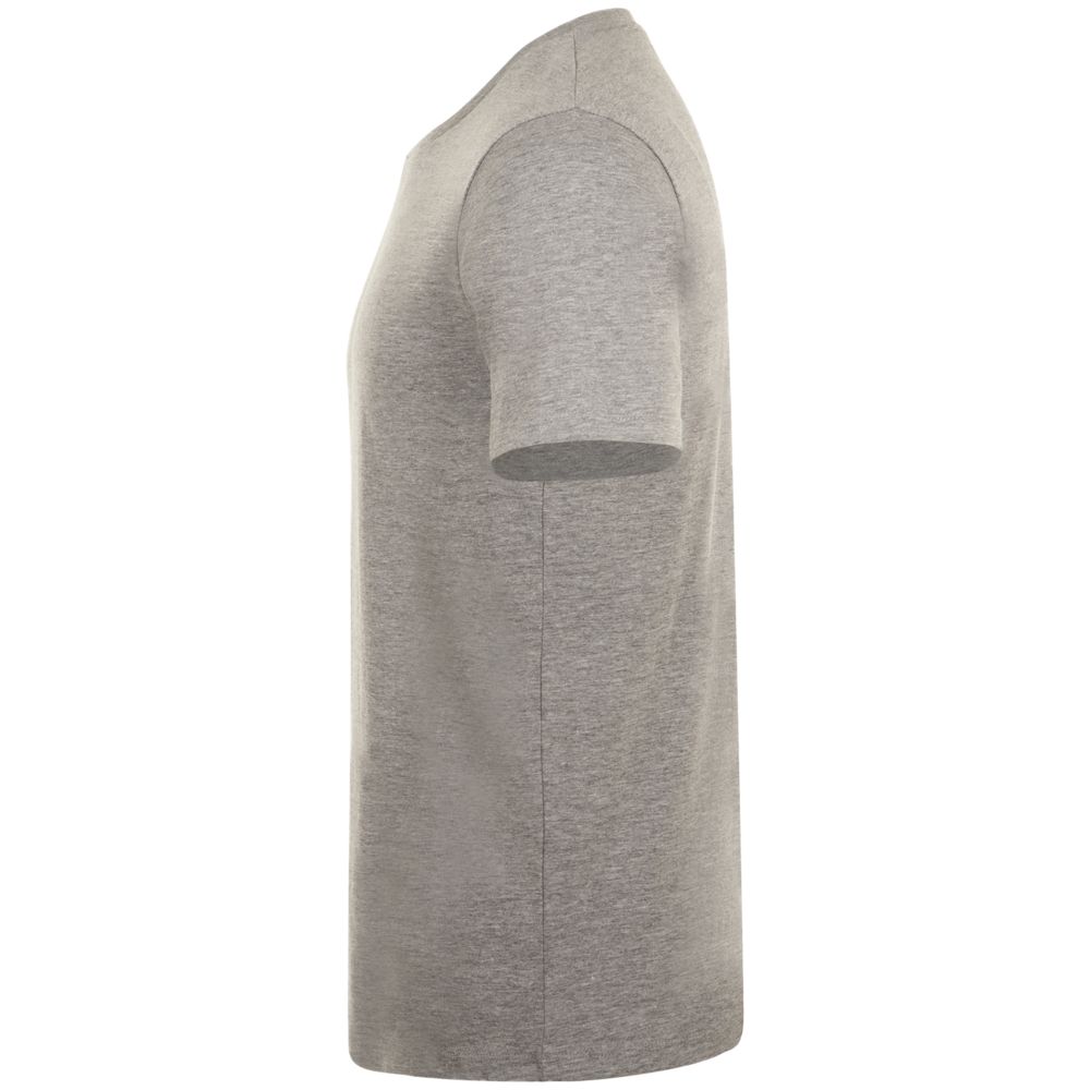 Кроеная мужская футболка с круглой горловиной. Ворот в тонкую резинку с укрепляющей тесьмой. Облегающий силуэт.