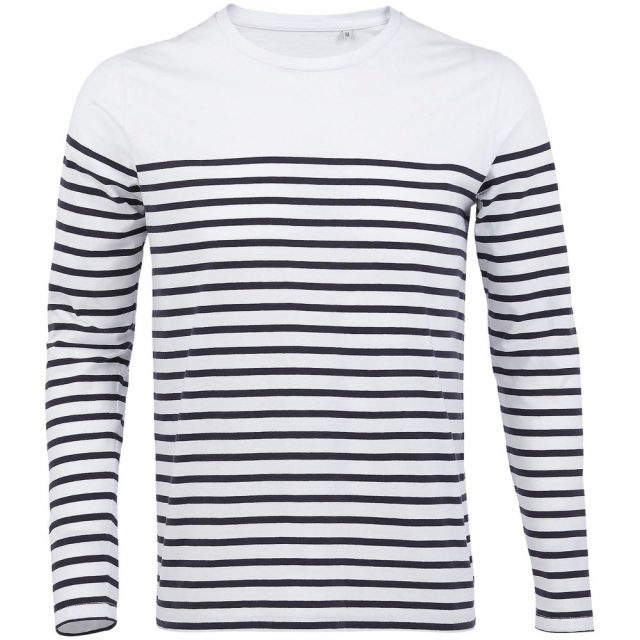 Кроеная мужская футболка с длинными рукавами из 100% гребенного хлопка.