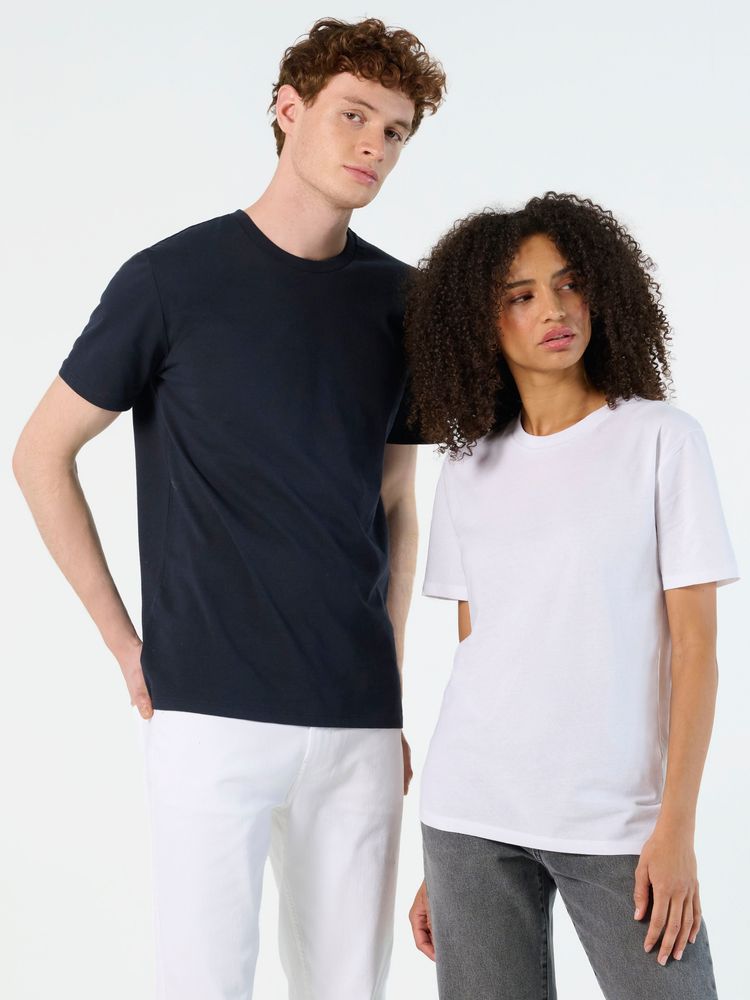 Футболка унисекс с боковыми швами из переработанных материалов.