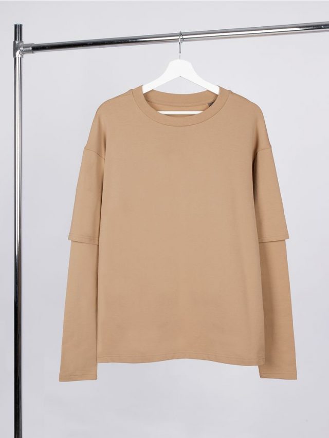 Футболка оверсайз с двойным рукавом Kosmos, бежевая