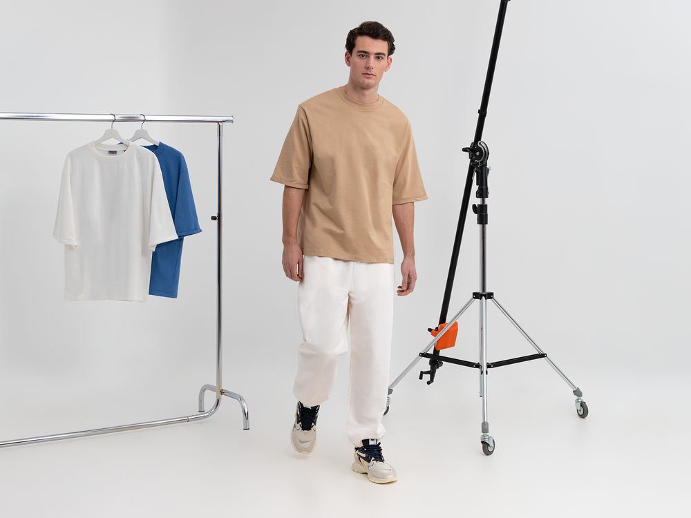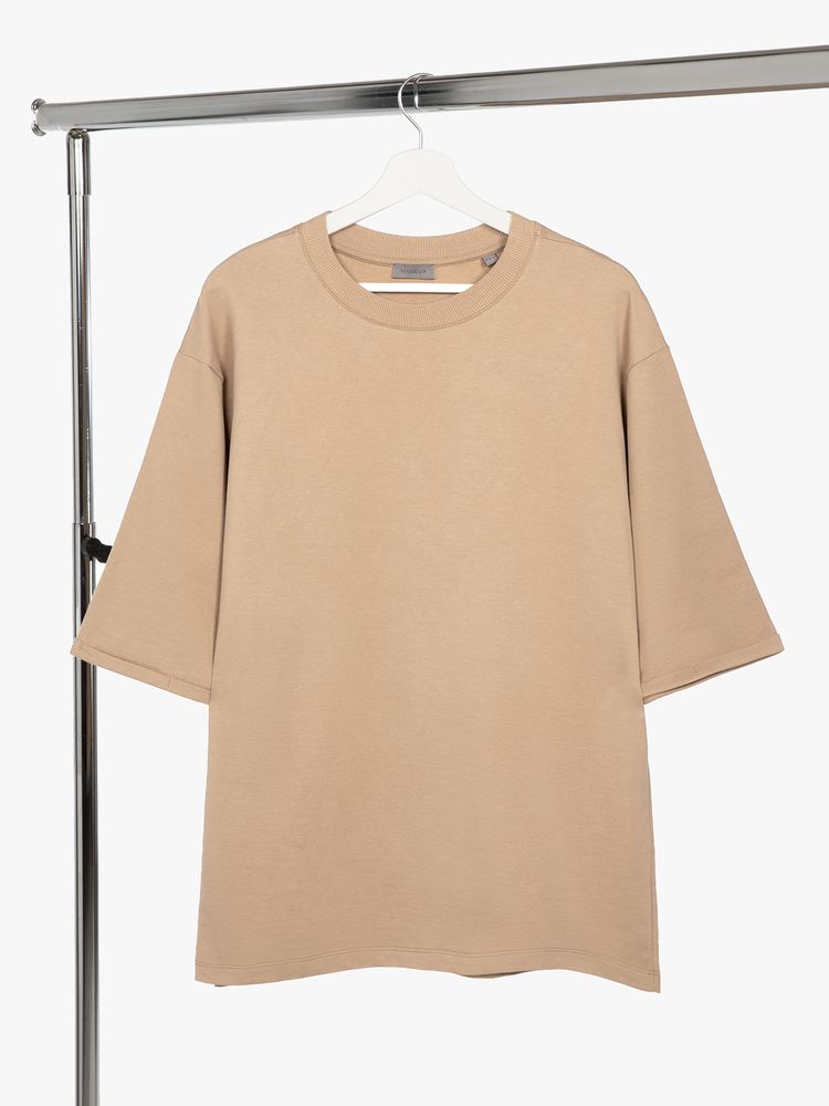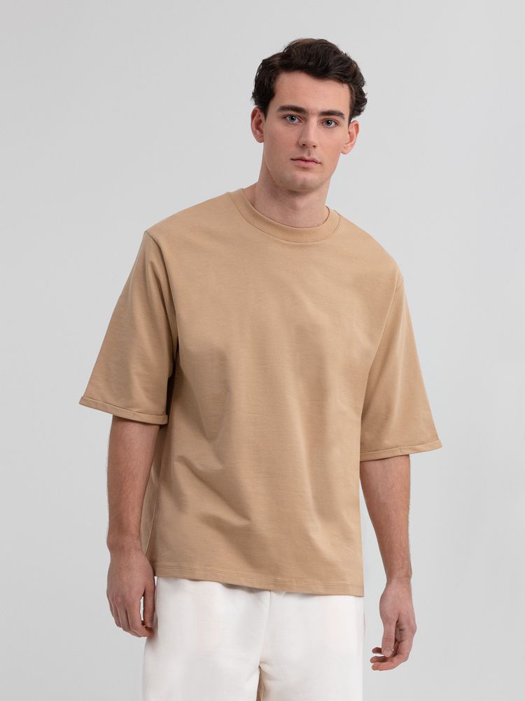 Футболка унисекс свободного кроя со спущенным плечом и смещенными плечевыми швами.