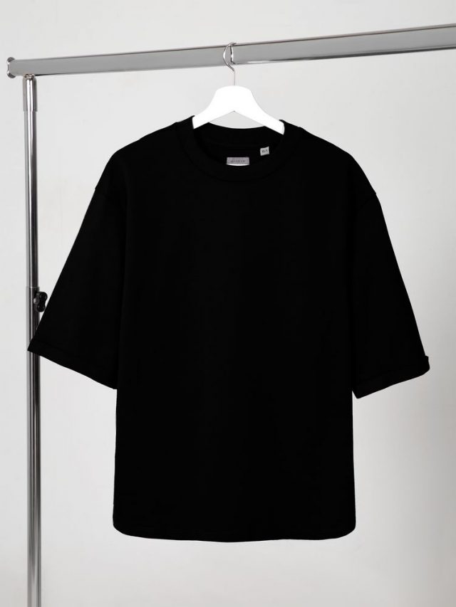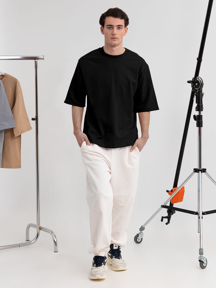 Футболка унисекс свободного кроя со спущенным плечом и смещенными плечевыми швами.