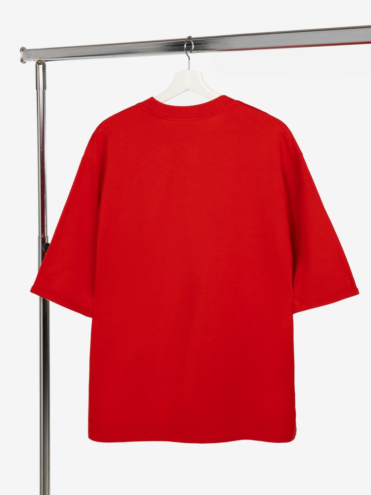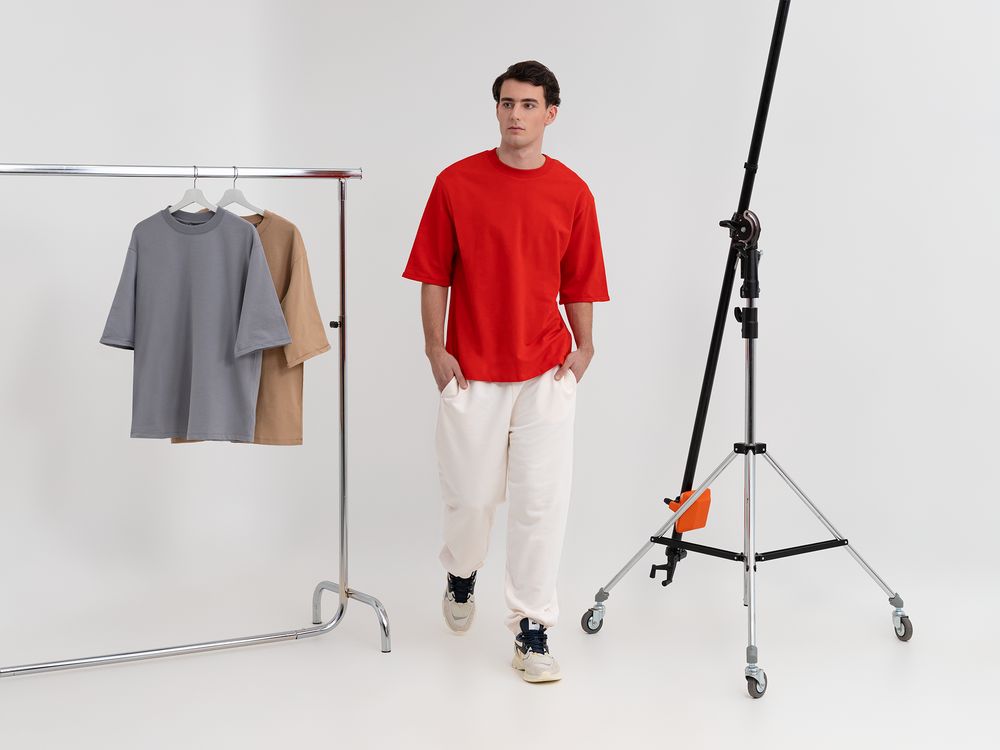 Футболка унисекс свободного кроя со спущенным плечом и смещенными плечевыми швами.