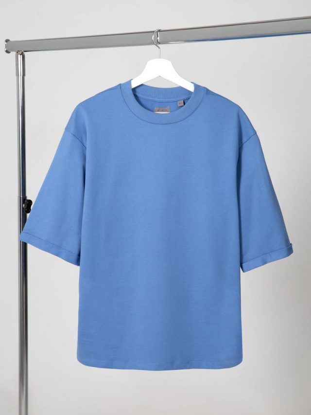 Футболка унисекс свободного кроя со спущенным плечом и смещенными плечевыми швами.