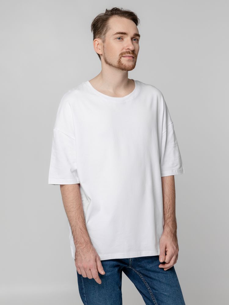 Объемная кроеная футболка с удлиненным рукавом из гребенного хлопка с эластаном не стесняет движений и создает модный расслабленный силуэт.
