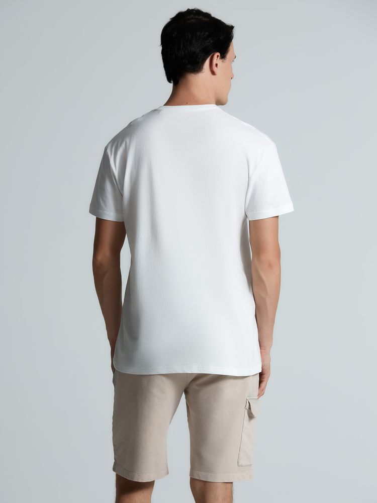 Футболка унисекс прямого силуэта без боковых швов (размеры S–4XL) или с боковыми швами (размер 5XL). Активное крашение полотна — изделие сохраняет цвет надолго.