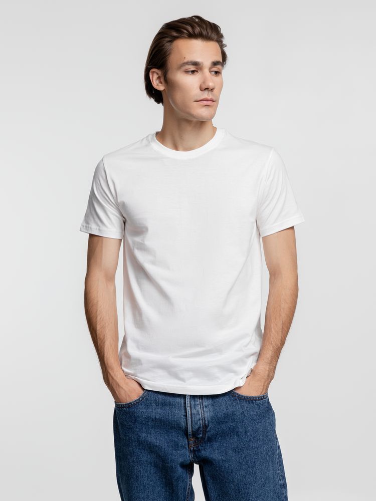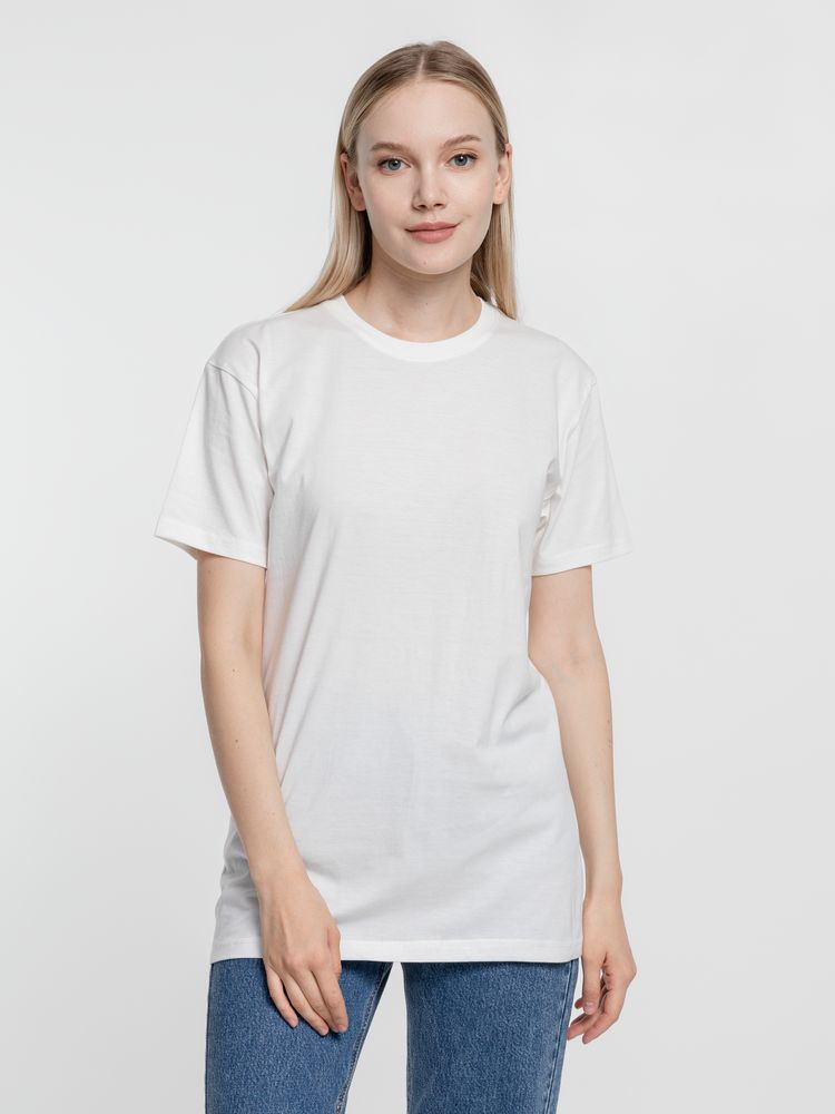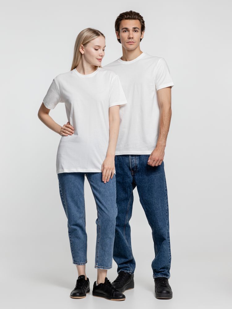 Базовая футболка унисекс прямого силуэта без боковых швов (размеры XS–4XL) или с боковыми швами (размеры 5XL–6XL).