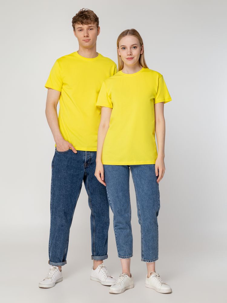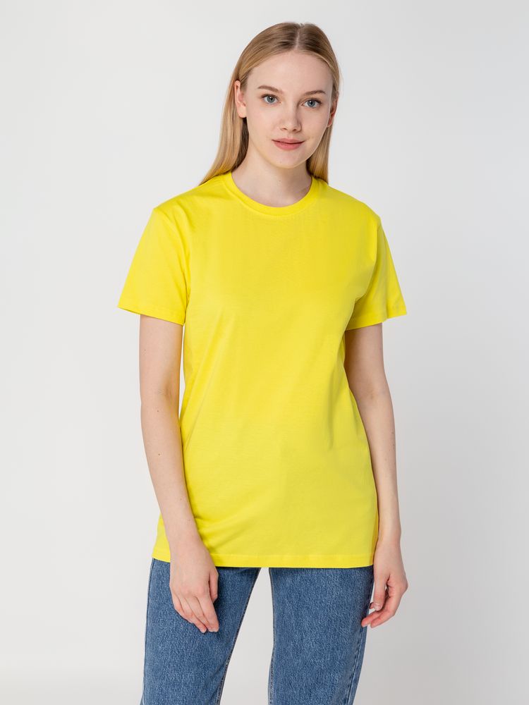 Базовая футболка унисекс прямого силуэта без боковых швов (размеры XS–4XL) или с боковыми швами (размеры 5XL–6XL).