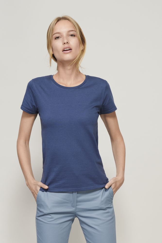Женская бесшовная облегающая футболка из органического хлопка с круглым вырезом.