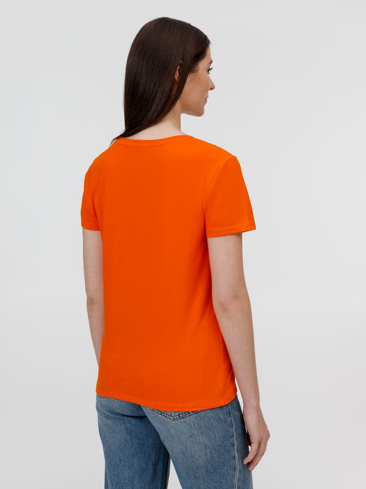 Кроеная футболка приталенного силуэта с круглым вырезом.