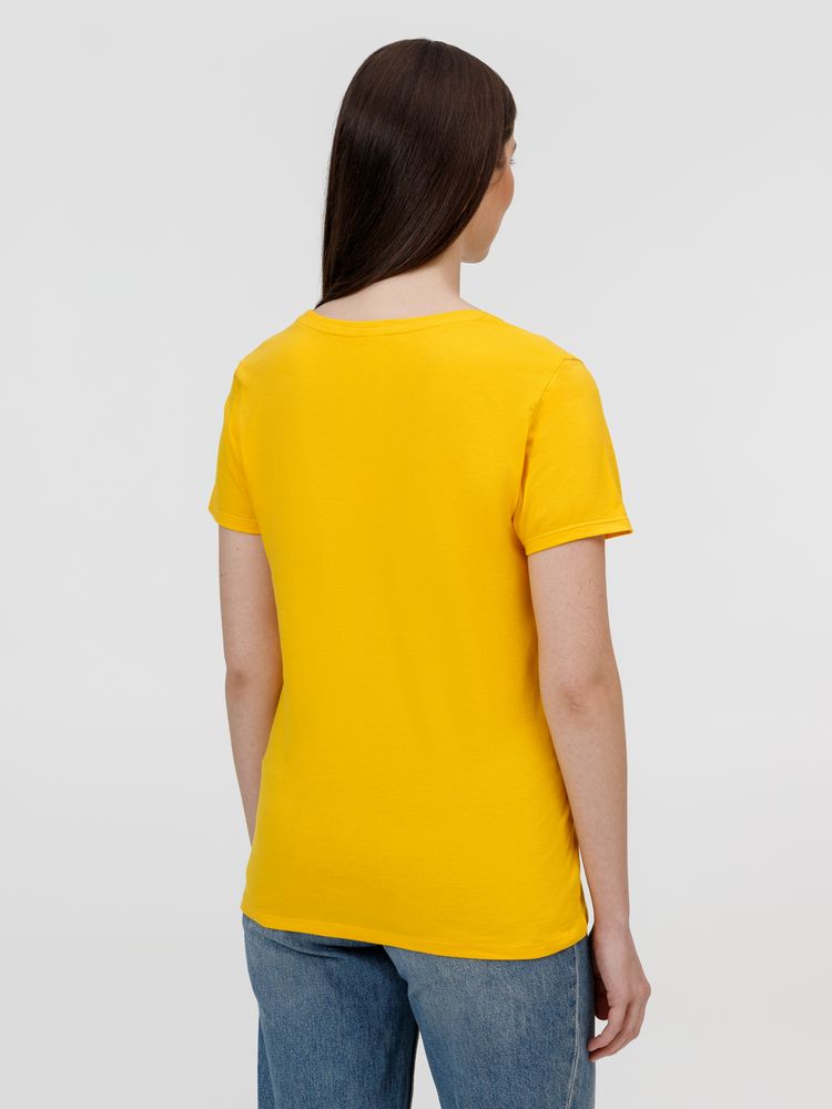 Кроеная футболка приталенного силуэта с круглым вырезом.
