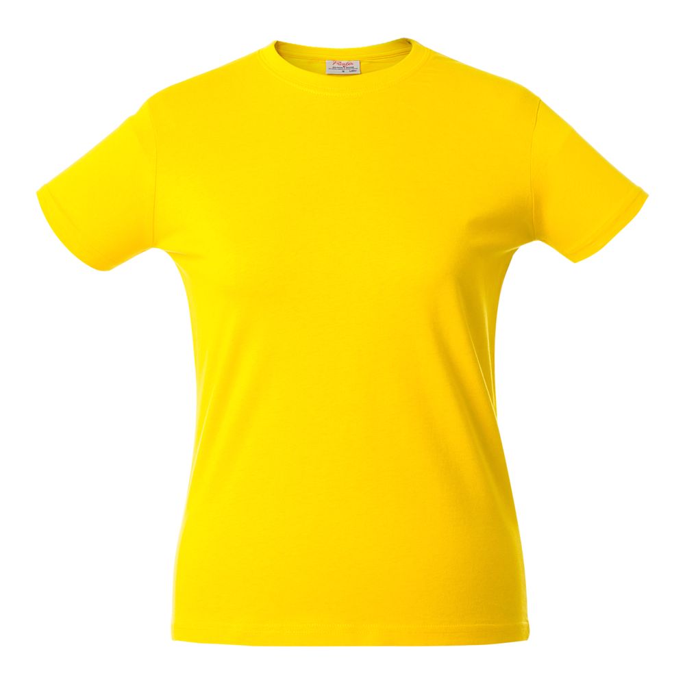 Женская футболка с уплотненными швами на плечах и двойным швом с эластаном. Четырехслойная резинка на воротнике предохраняет его от растяжения.