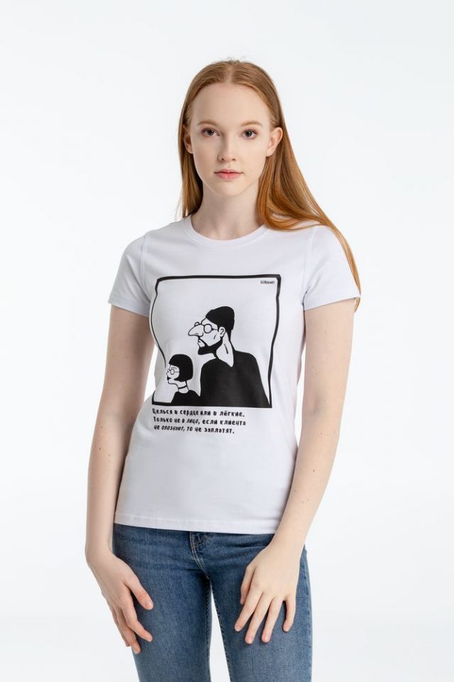 Дизайн принта: Яков Коган.Приталенная женская футболка стретч высокого качества.