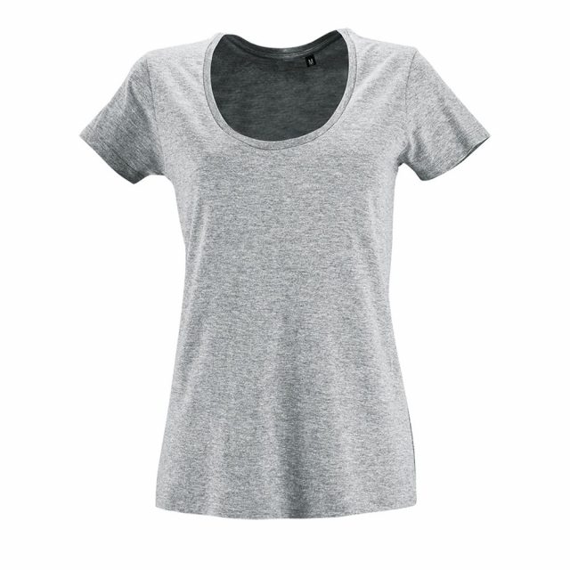 Женственная футболка с глубоким круглым вырезом.