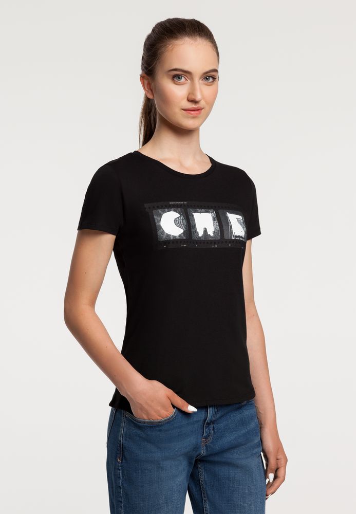 Коллекция «Небо-душа»: красота всегда рядом.Кроеная футболка приталенного силуэта с круглым воротом.