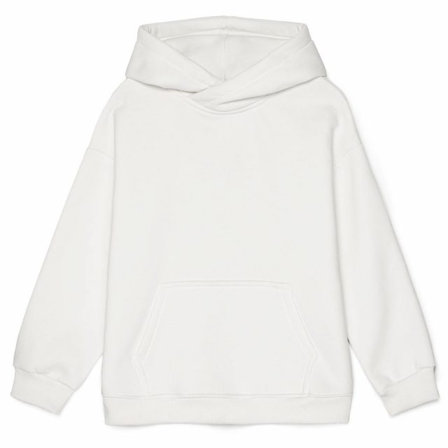 Детское худи унисекс со спущенным плечом и карманом-кенгуру.