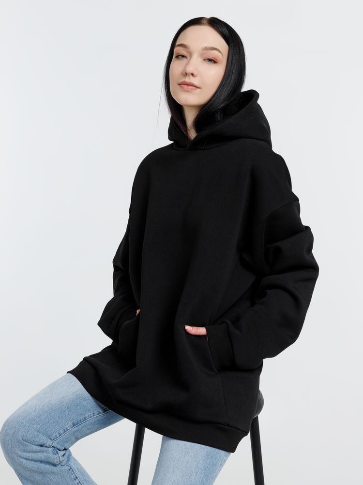 Худи унисекс One Size со спущенным плечом и карманами в боковых швах.