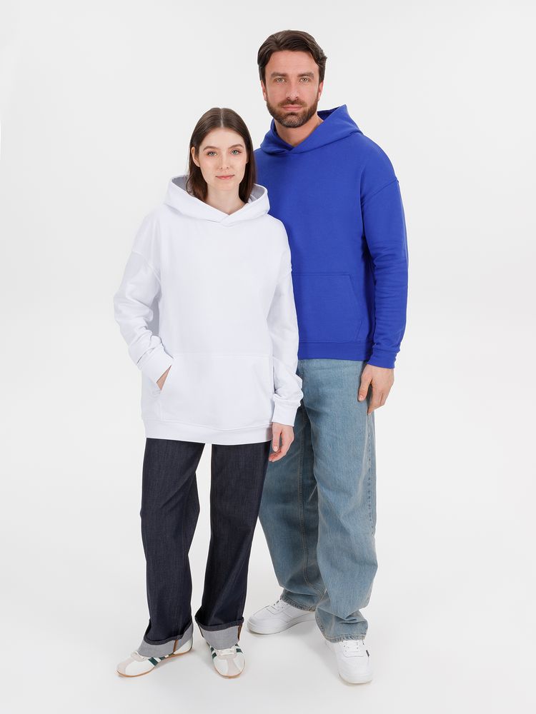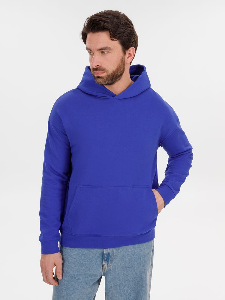 Худи унисекс со спущенным плечом и карманом-кенгуру расслабленного силуэта.