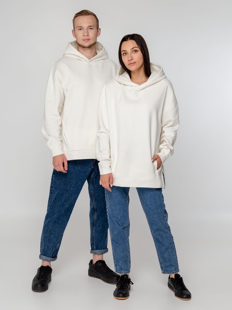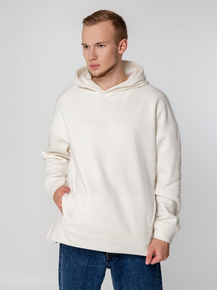 Худи унисекс оверсайз со спущенным плечом и внутренним карманом-кенгуру.