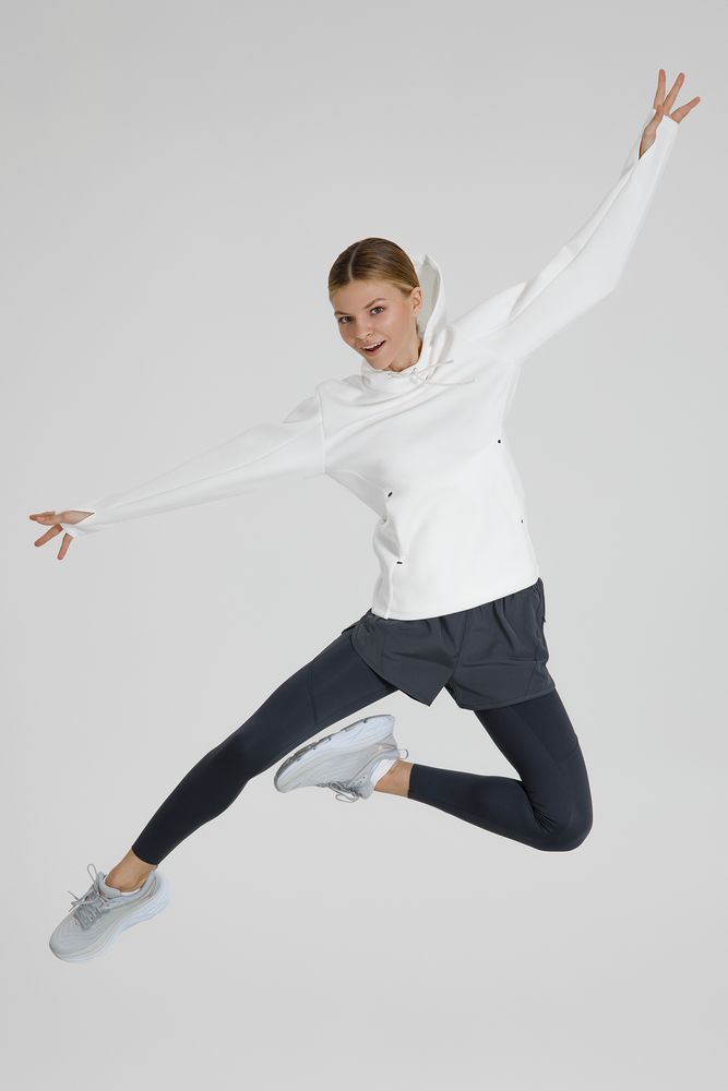 Такой «сэндвич» хорошо держит форму (а еще приятно пружинит под пальцами), но при этом остается легким и эластичным, не сковывает движений и отводит лишнюю влагу. Внутренняя ячеистая структура не препятствует воздушному обмену, позволяя коже «дышать», — а значит, больше никакого «эффекта парника» во время тренировки или активной прогулки.