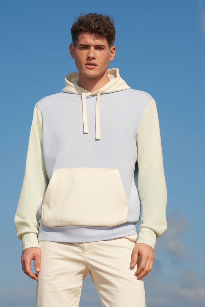 Трехцветное утепленное худи унисекс из органического хлопка и переработанного полиэстера.