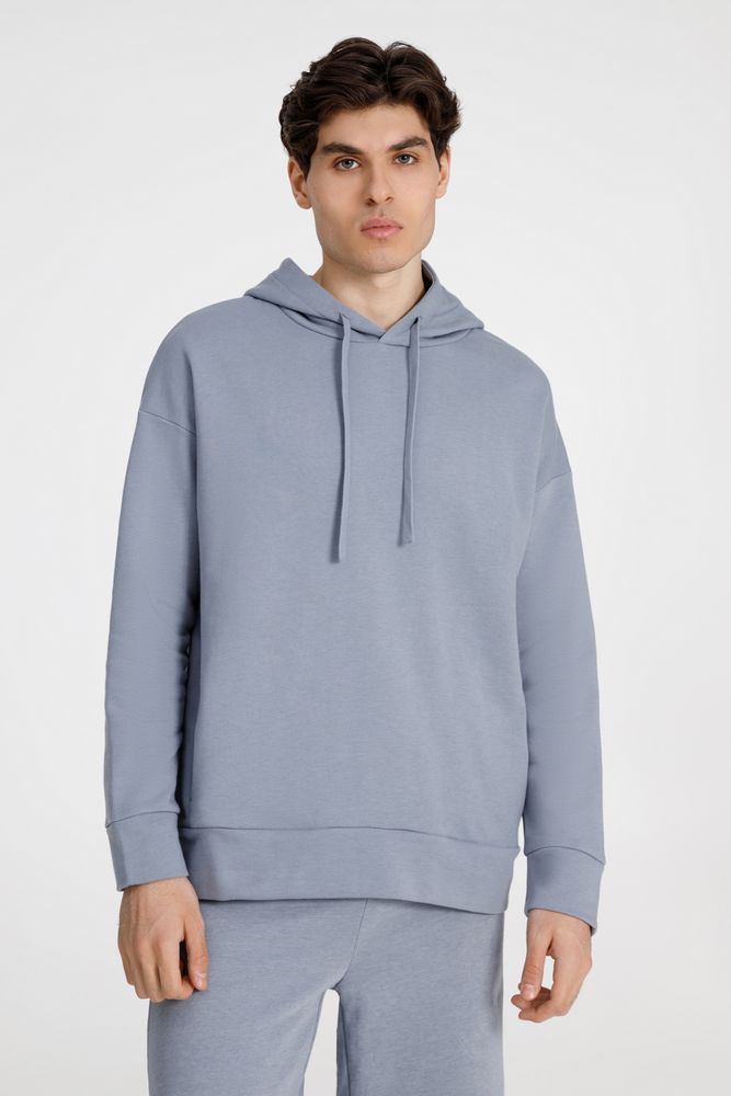 Худи унисекс свободной посадки со спущенным плечом.