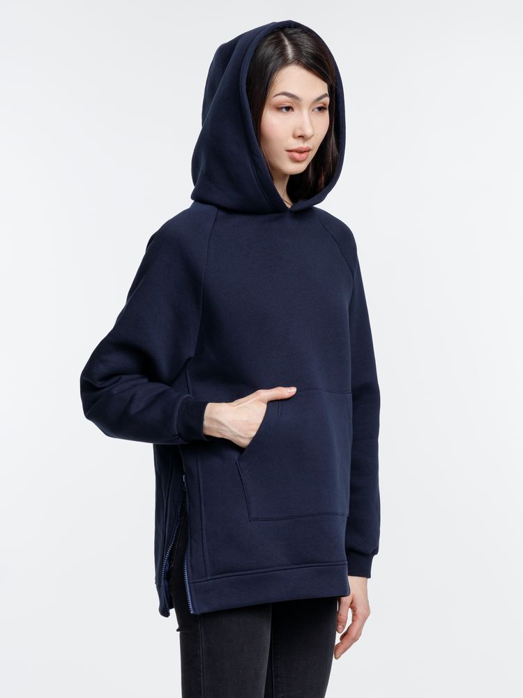 Худи унисекс удлиненного силуэта с молниями в боковых швах.