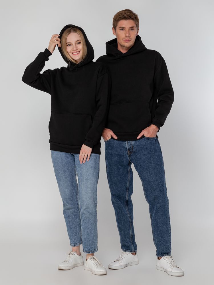 Худи унисекс свободного кроя с капюшоном и карманом-кенгуру.