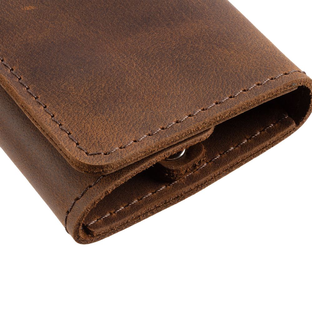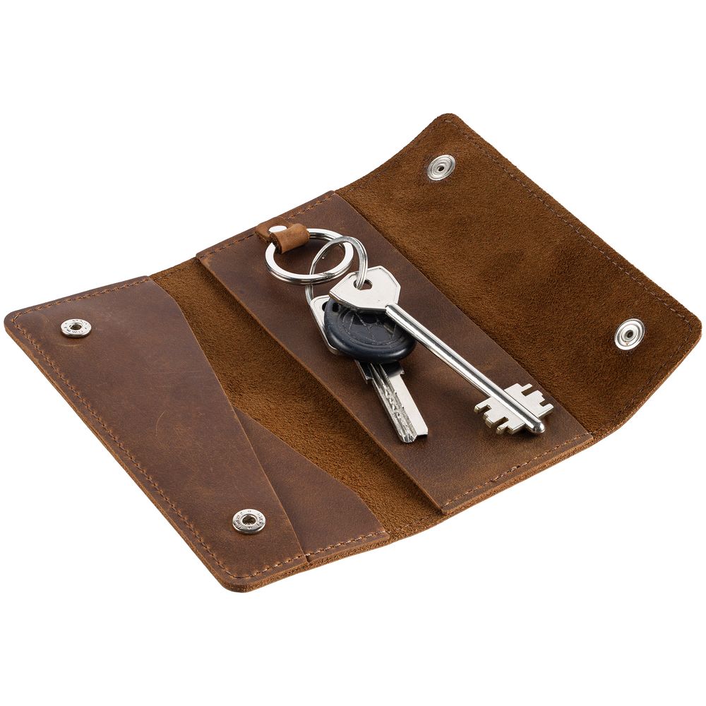 Ключница изготовлена из плотной и прочной натуральной кожи Crazy Horse. На ее поверхности довольно быстро появляется неповторимый рисунок из потертостей и складок — следы времени придают материалу изысканный винтажный вид, делая каждый предмет уникальным в своем роде. Так изделия, подобно благородным напиткам, со временем приобретают лишь большую ценность.